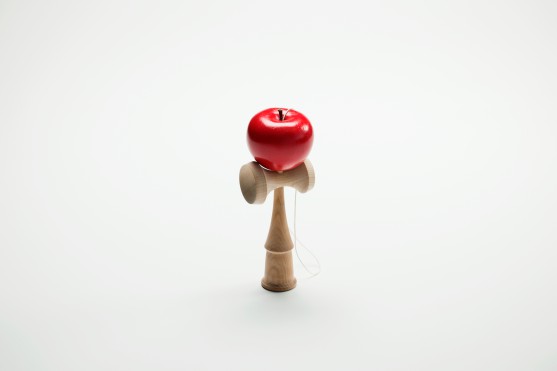 「りんごのけん玉」はニュートンが落ちるりんごを見て万有引力の法則を発見したように、けん玉も引力を用いていることに注目し、地球の引力を感じるための遊び道具としてデザインされました。