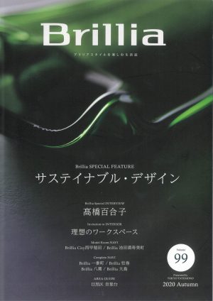 分譲マンション「Brillia」シリーズを中心とした分譲住宅事業を行う東京建物ハウジングサークル Brillia Club事務局が発行する会員向け雑誌『Brillia』。2020年秋号の「プロダクトに学ぶサステイナビリティ」および「編集後記」のページに、more treesオリジナルプロダクトの「つみき」が掲載されました。