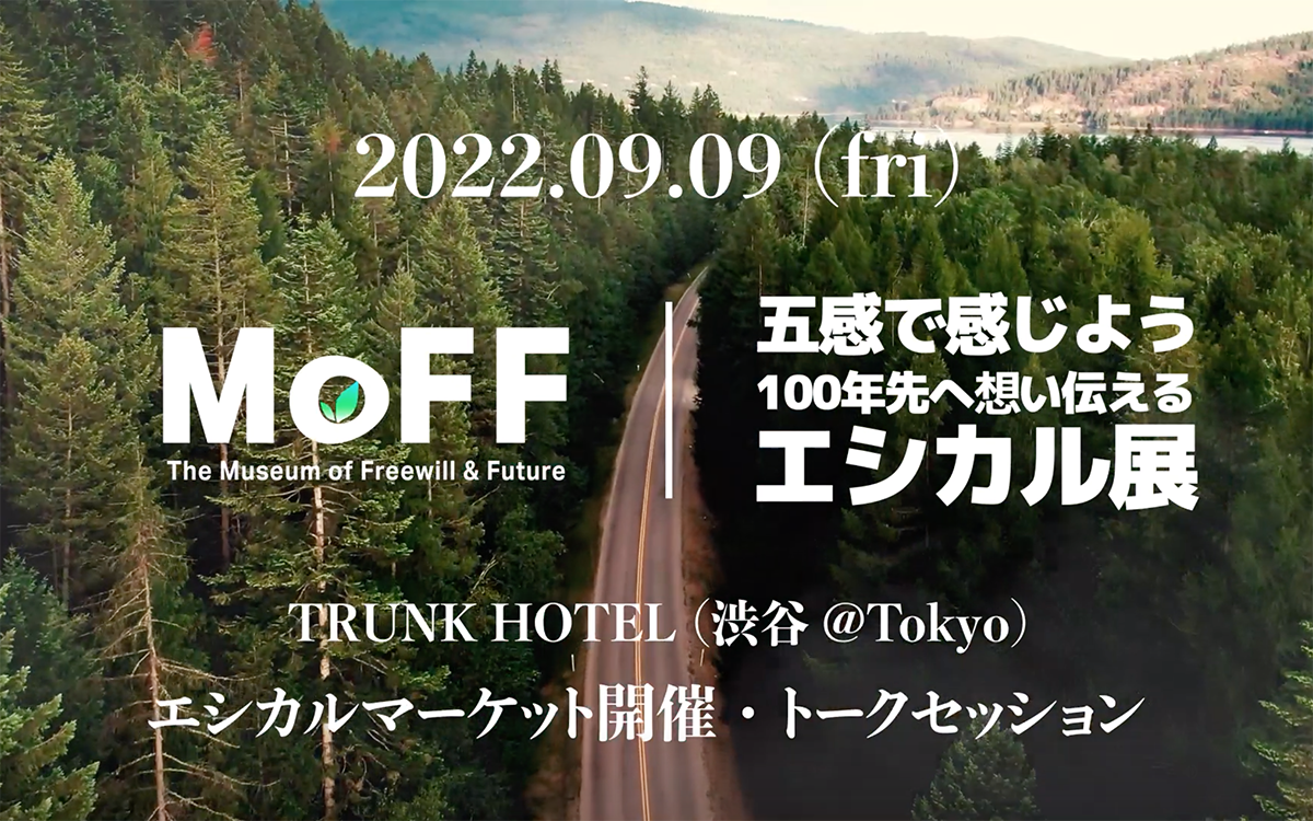 株式会社Freewill主催により、ICTを駆使したサスティナブルな世界を体感できるイベントとして2019年より開催されている「The Museum of Freewill & Future」、通称「MoFF」。今年は「五感で感じよう“100年先へ想い伝える”エシカル展」と題して、9月9日(金)東京・渋谷のTRUNK(HOTEL) にて開催されます。