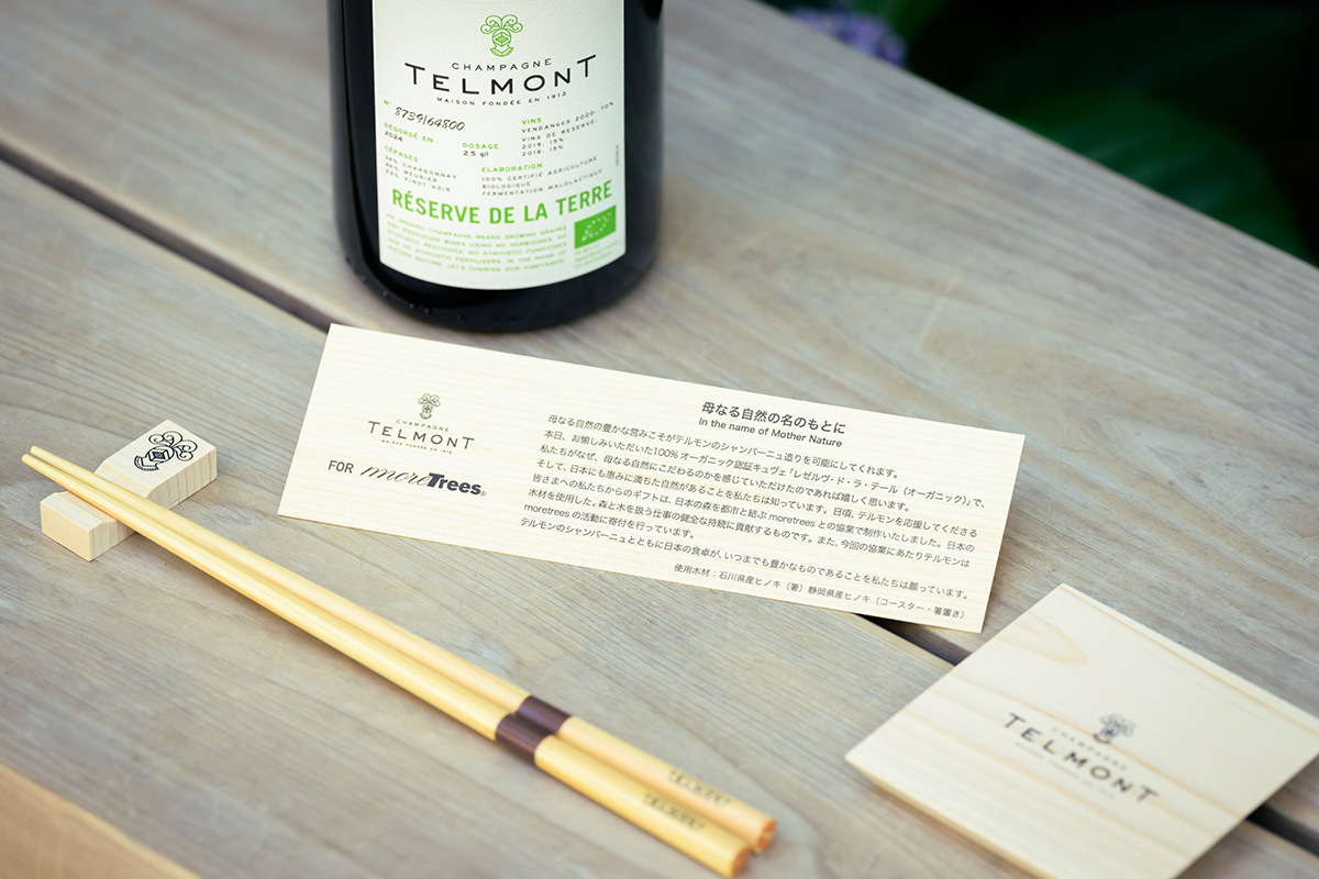 「母なる自然の名のもとに」をすべての活動の指標とし、サステナブルなワイン造りを続ける革新的シャンパーニュメゾン「テルモン」。先日more trees 水谷がゲストとしてお招きいただいた新作シャンパーニュの発表会で、来場者にお土産としてお渡しするアイテムの制作をmore treesがお手伝いしました。