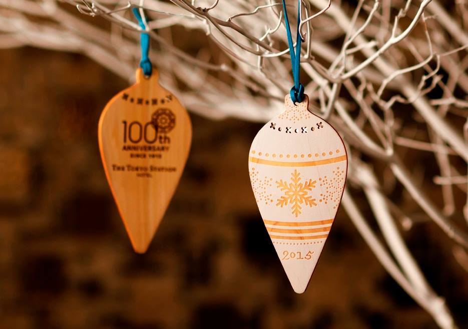 また、毎年ご好評いただいている国産材を使ったクリスマスチャリティオーナメントを今年も制作しました。ホテルオリジナルのデザインを毎年more treesが製作、費用はホテル負担で賄われています。ご寄付をいただいた方へ500個限定でお配りしていましたが、今年も大人気のためすでに配布は終了。みなさまの温かなお気持ちに心より感謝いたします。