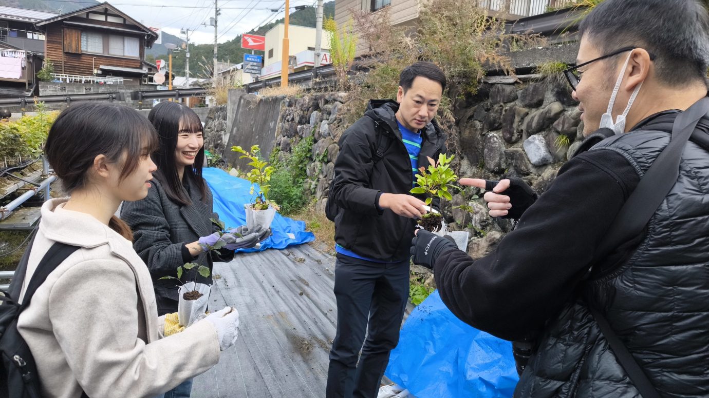 坂本龍一と旧知の仲だったホットスタッフ・プロモーション永田友純会長が高知県梼原町の森を訪れ、鍬を振ってイスノキを植えたのが昨年11月。そこから「HOT STUFFの森」づくりがスタートしてちょうど1年目の11月10日・11日、初めて社員のみなさまを現地へお連れする森づくり体験ツアーを実施しました。