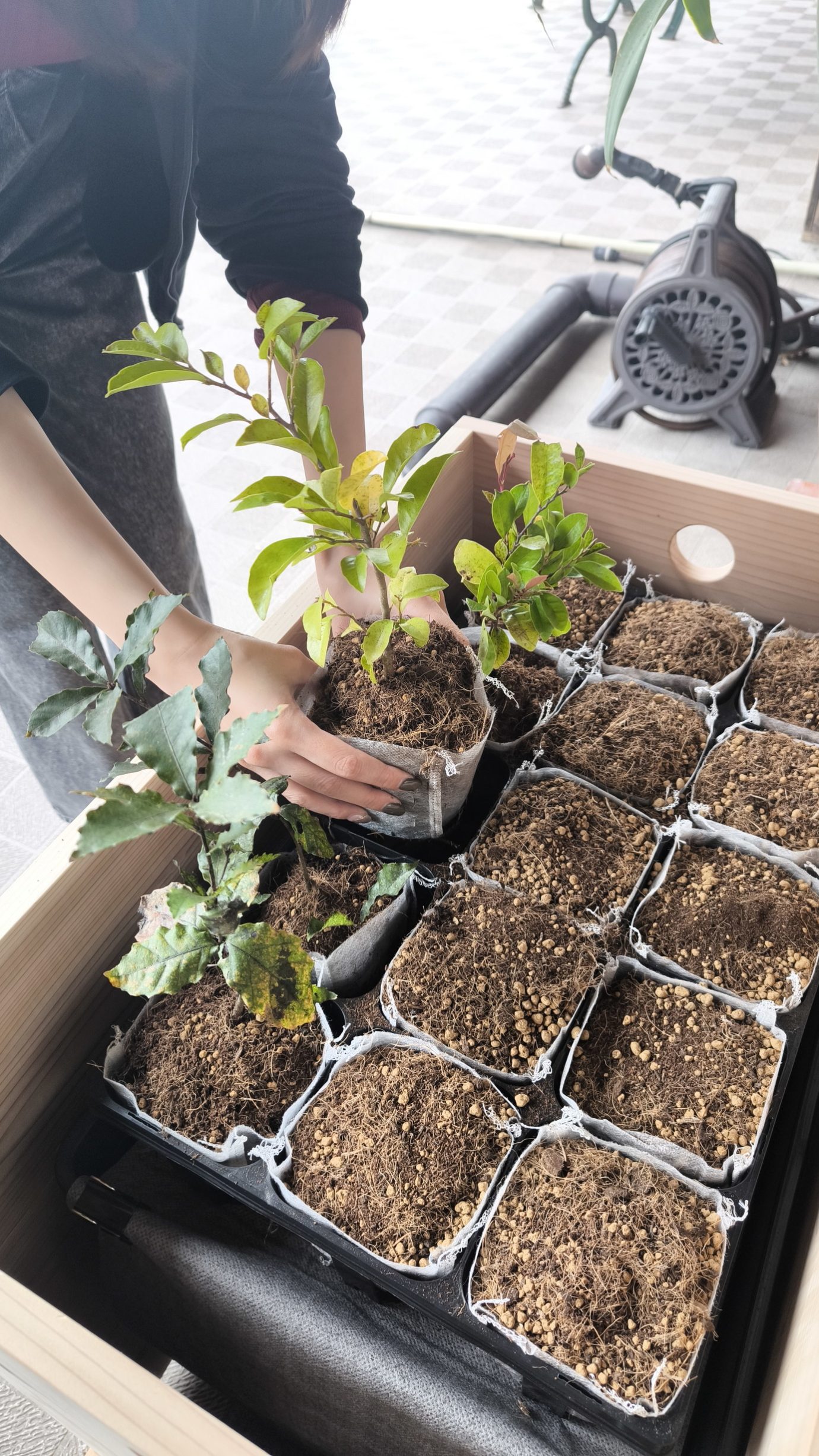 将来、梼原町の森へ里帰りする日まで、ホットスタッフのみなさんの手で育てられます。梼原の斜面で根づく苗木と、東京で育つ苗木、ふたつの時間が再び交差する日が待ち遠しいですね。