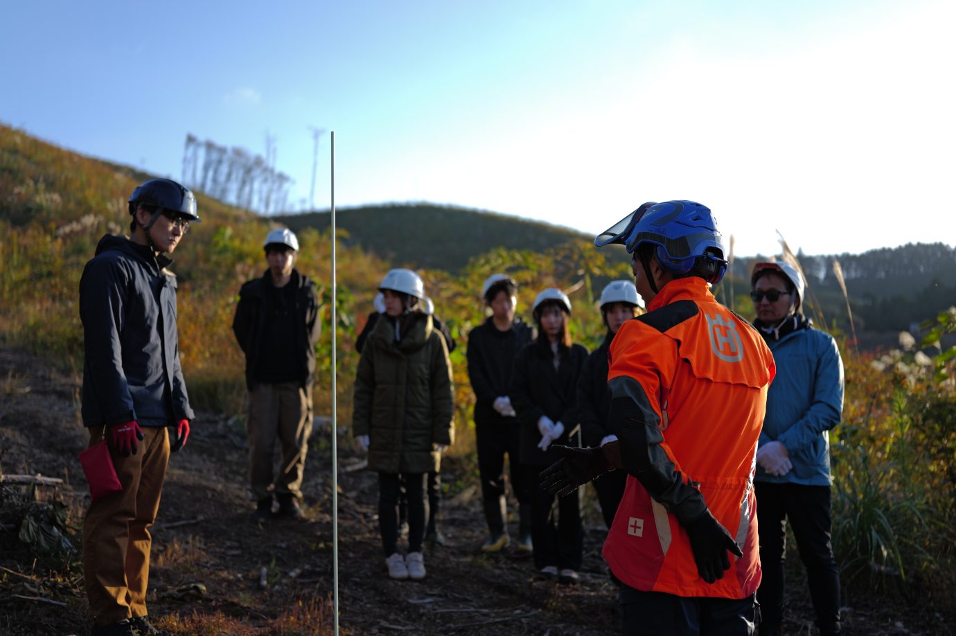 梼原町井高地区にある「HOT STUFFの森」へ到着すると、まずは恒例の植樹レクチャーです。レクチャーをしていただくのは、森への愛あふれるこの方。