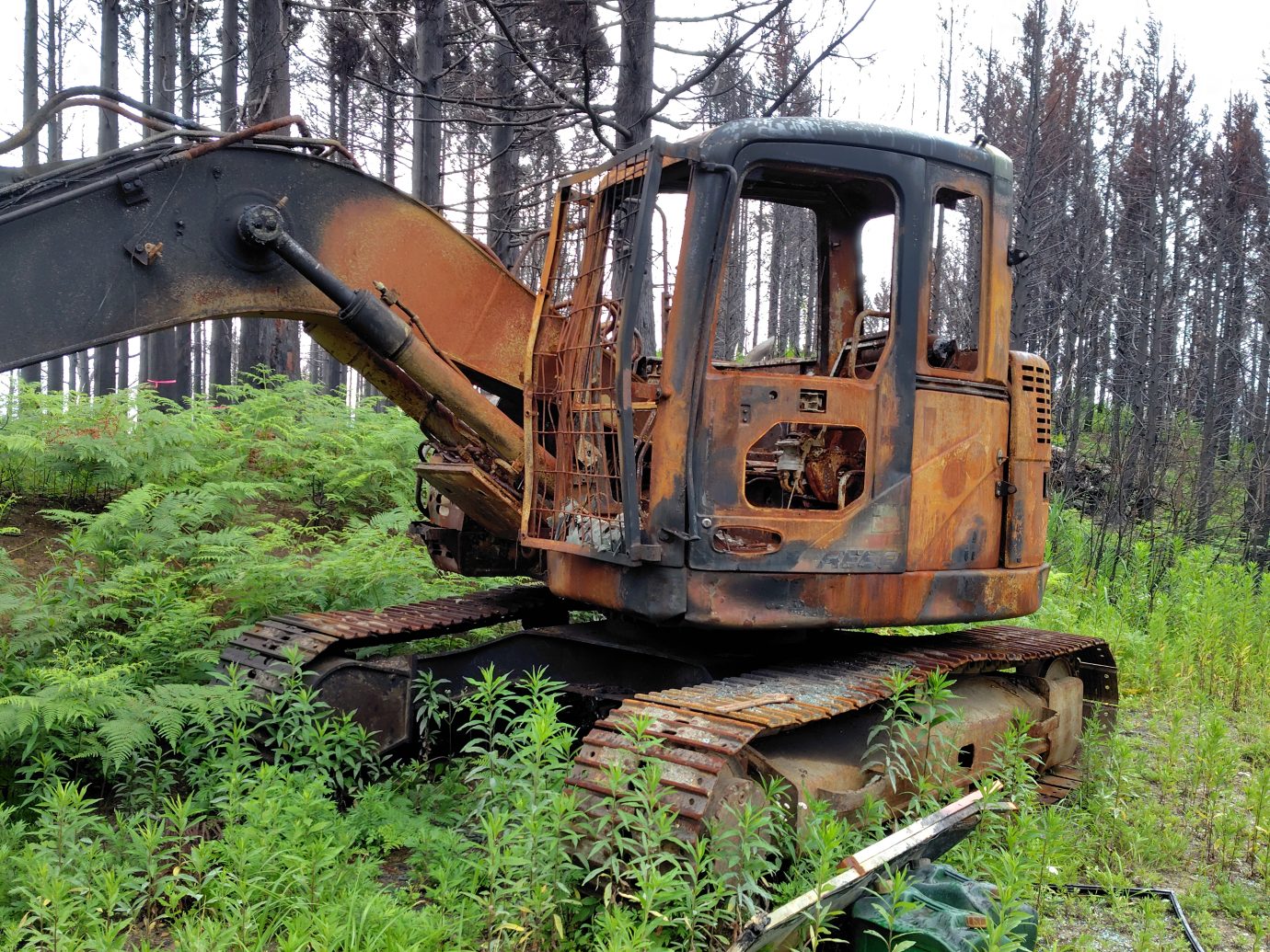 ▲火の手が迫り放棄せざるを得なかった重機