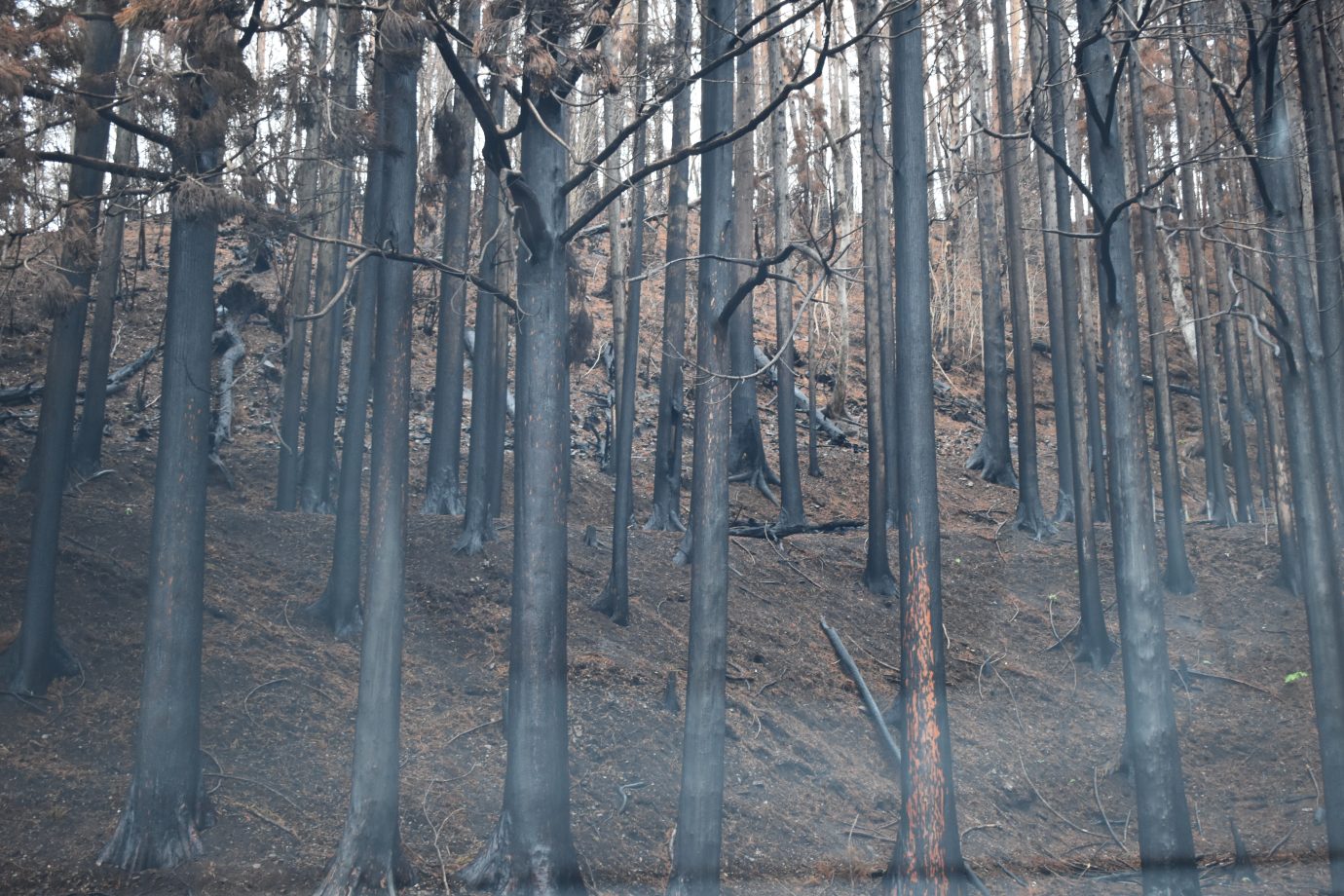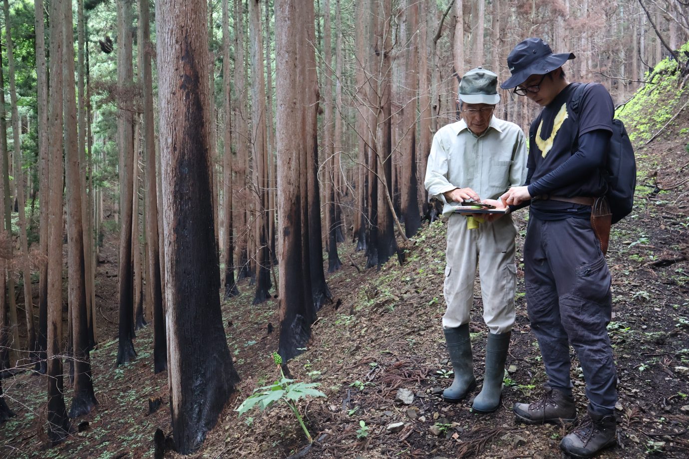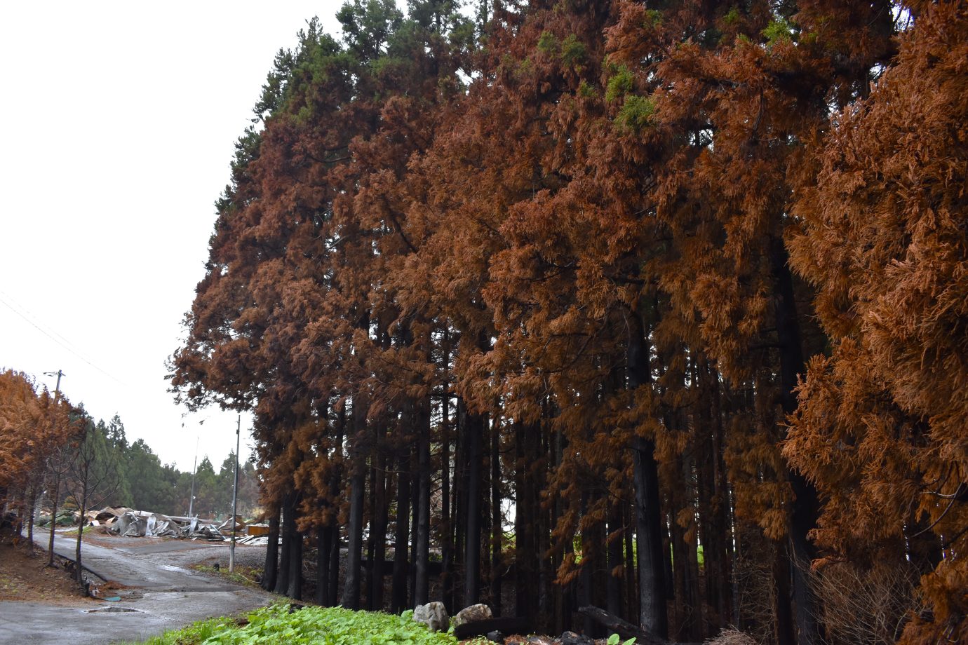 2025年5月、はじめて現地を訪れた私たちは、黒焦げの被災木を至るところで目撃し、被害の大きさにショックを受けました。
